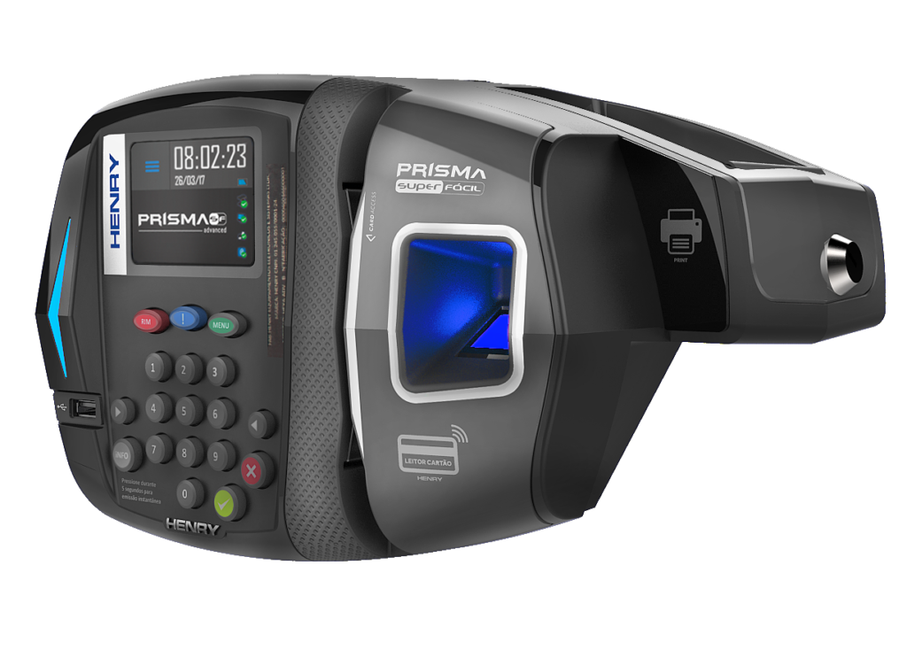O Prisma Super Fácil Advanced é um relógio de ponto eletrônico (REP) da Henry homologado pelo MTE e certificado pelo Inmetro. Disponível em 5 modelos diferentes, possui tela touch screen e diversas opções de identificação como biometria, códigos de barras, proximidade RFID e Smart Card.